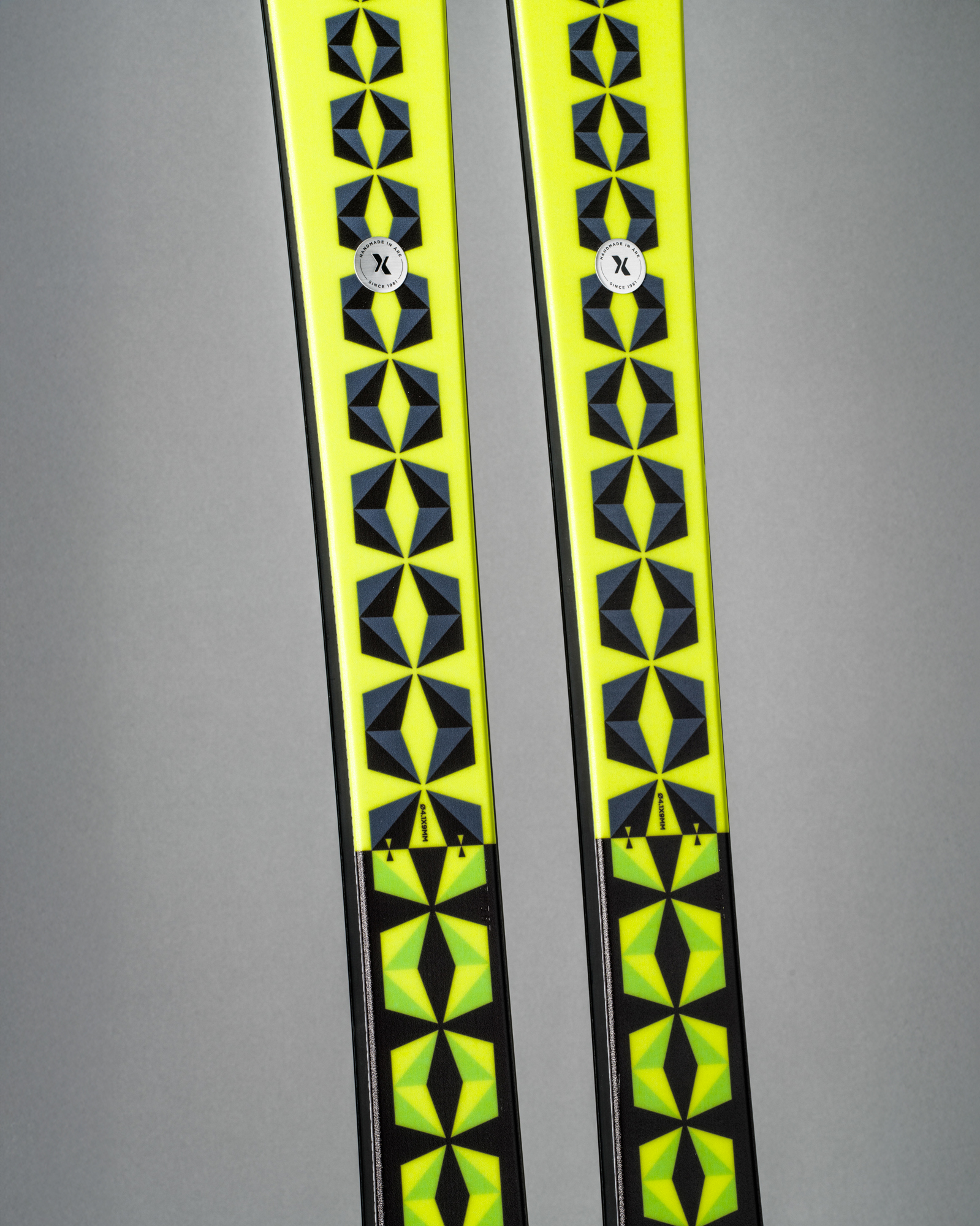 ソフトなフレックスと足元のメタルアローが、しなりやすさと優れたエッジグリップを兼ね備えたスキーを実現。超ショートラディウスとノーズとテールのロッカーが相まって、驚くほど素早いターンと優れた反発力を兼ね備えたスキーを生み出しています。
