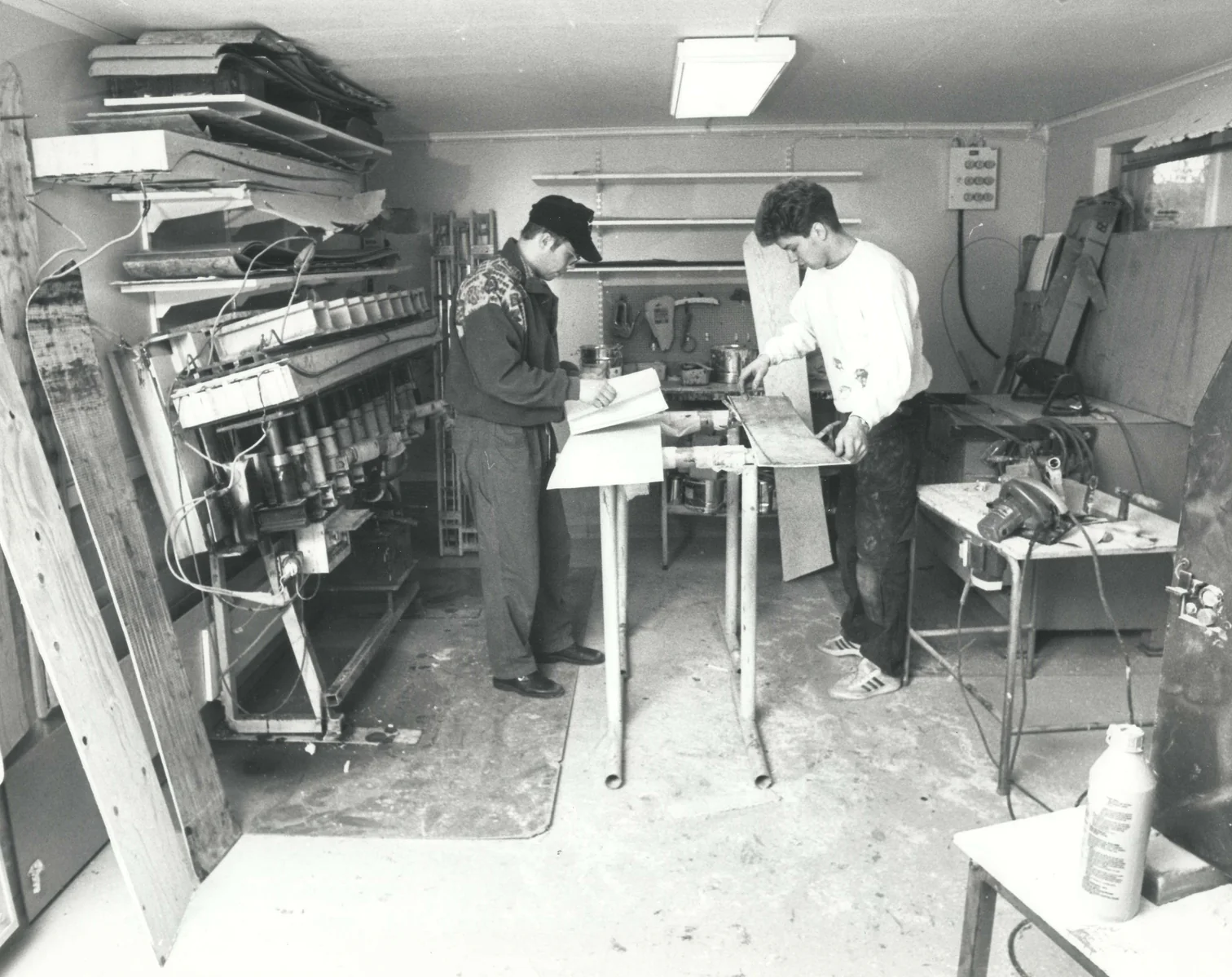 1990年代初頭、スノーボードが新たなブームとなった時、ステファンとパトリックは趣味にさらに力を入れ、すべてを賭けることにしました。ヨーロッパアルプスの大手メーカーを何度か視察した後、二人は自分たちも非常に似た製品を製造していることに気づきました。フローソン島のガレージで製造していた自社デザインは、大きく進化していたのです。